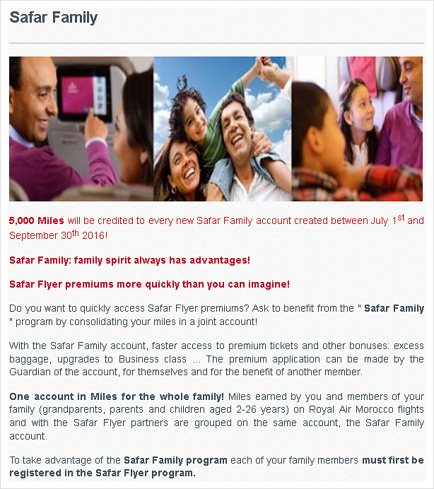 As a safar flyer corporate member your business can earn 30 more award miles for every flight your employees take with royal air maroc. If you re a safar flyer you can get up to 40 off award flights. We analyze 450 000 new fares every day and find the best deals with our 365 day analysis for you. Your safar family account number allows you as a tutor to check your balance ask for safar flyer rewards etc.